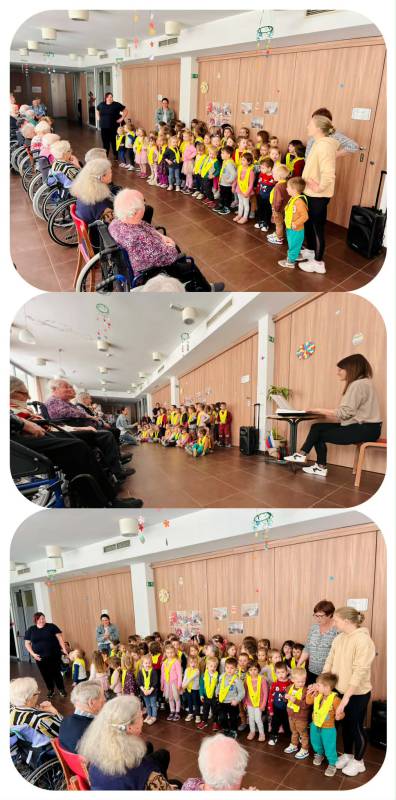 Pomladni dnevi so v naš vrtec prinesli več sonca, dobre volje, igrivosti in razigranega otroškega smeha. V takšnem vzdušju smo se z otroki iz pevskega zbora vrtca Vipava ter skupini Lune in Škratki v aprilu odpravili tudi na dva obiska – k starejšim občanom v Pristan in k invalidnim odraslim v Varstveno delovni center Vipava, ki je tudi naš prvi sosed vrtca.