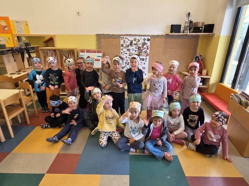 Ga. Puc je otrokom najprej predstavila kateri materiali in pripomočki so potrebni za izdelavo modnih dodatkov. Vsak otrok je nato izdelal svoj naglavni trak.
